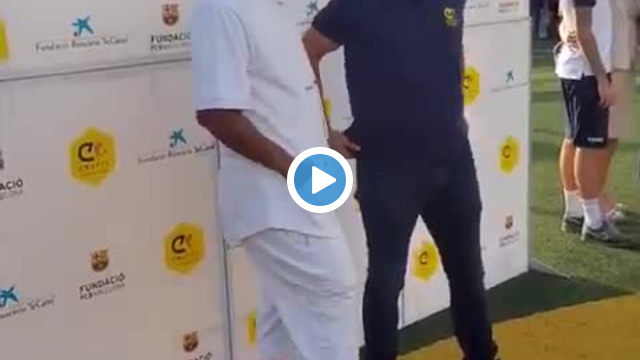 Ronaldinho, Barcelona'dan eski takım arkadaşı Puyol'u hazırlıksız yakalayınca fırsatı değerlendirdi.