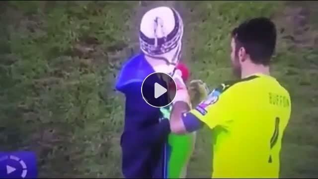 italya'nın tecrübeli kalecisi Gianluigi Buffon maç ortasında sahaya giren bir taraftarın formasını hakem görmeden hemen imzaladı.