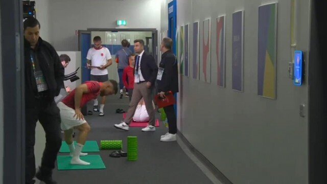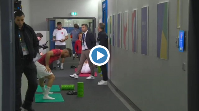 A Milli Futbolcularımız, Hollanda maçı öncesi soyunma odasında Plevne Marşı ile birlikte hazırlıklarını sürdürüyor.