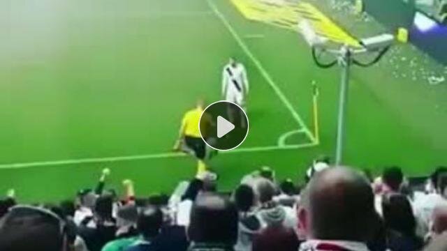 Polonya'da yardımcı hakem ile futbolcu soğumamak için ısınma hareketlerini sürdürüyor