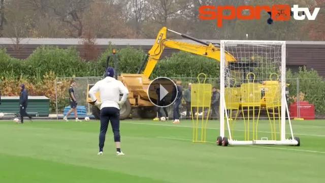 İngiltere Premier Lig takımlarından Tottenham'lı futbolcular idmanda ilginç frikik çalışması yaptı.