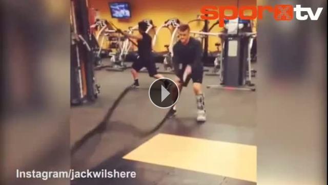 Sakatlığından dolayı uzun süre sahalardan uzak kalacak olan Arsenal'in yıldız oyuncusu Jack Wilshere, sakatlığına rağmen çalışmalarına ara vermeden devam ediyor.Yorumlar