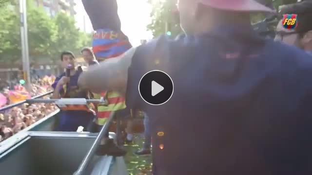 Barcelona'nın şampiyonluk kutlamalarında yıldız oyuncular Neymar ve Suarez eğlenceli dakikalar geçirdi.