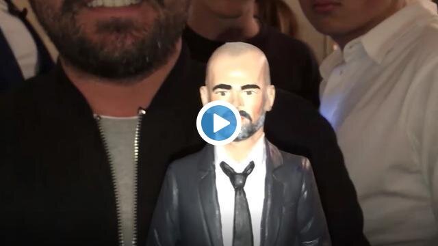 Şampiyonlar Ligi maçı için İtalya'ya giden Pep Guardiola'ya kendi küçük heykeli hediye edildi.