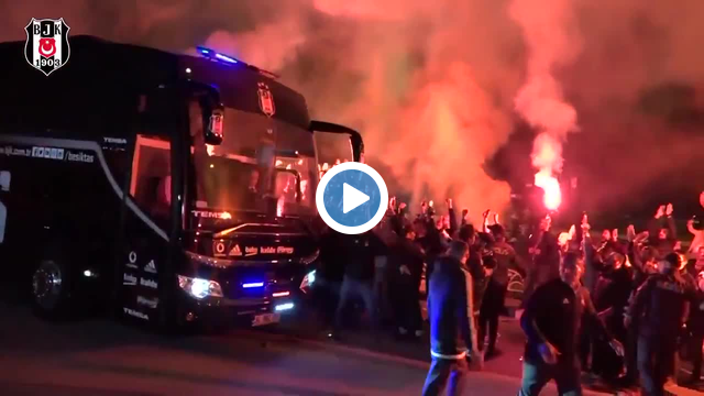 Beşiktaşlı taraftarlardan meşaleli karşılama