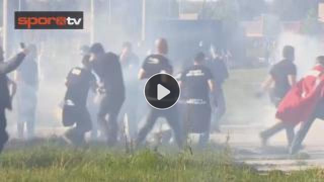 UEFA Avrupa Ligi'nde Lyon'la deplasmanda karşılaşacak Beşiktaş'ı desteklemeye giden taraftarlara Fransız polisi maçtan önce saldırdı.
