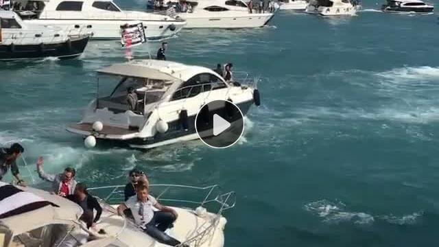 Beşiktaş'ın savunma oyuncusu Dusko Tosic bulundukları tekneden kendilerini takip eden taraftarları görüntüledi.
