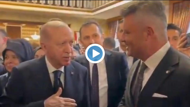 Cumhurbaşkanı Recep Tayyip Erdoğan, 23 Nisan resepsiyonunda Fenerbahçe Başkanı Sadettin Saran ile selamlaştı....