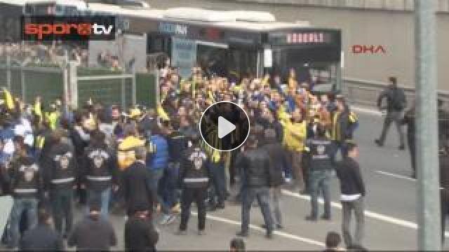 Derbi maçta Galatasaray'la karşılaşacak Fenerbahçe'yi izlemeye giden sarı lacivertli taraftarlar TT Arena'ya girdi. 1 Fenerbahçe taraftarı gözaltına alındı.