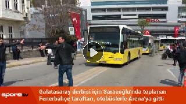 Galatasaray maçına gitmek için Saracoğlu'nda toplanan Fenerbahçe taraftarı yoğun güvenlik eşliğinde otobüslerle TT Arena'ya gitti.