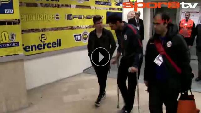 Fenerbahçe maçında sakatlanarak oyundan çıkan Galatasaraylı Hakan Balta stadı koltuk değnekleri ile terk etti.