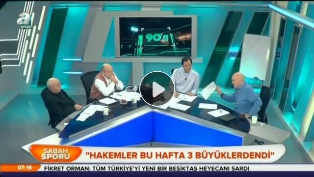 A Spor’da yayınlanan 90’a programında Sabah gazetesi yazarı Hıncal Uluç, Süper Ligin 10. haftasında 3 büyüklerin karşılaşmalarını yöneten hakemlerin çok kötü bir performans sergilediklerine vurgu yaptı.Yorumlar