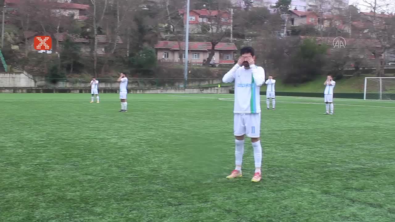 Zonguldak'ta amatör ligde mücadele eden Karamansporlu futbolcular, elleriyle gözlerini kapatarak hakemleri protesto etti.