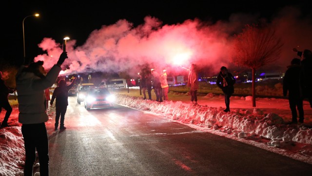Süper Lig'de yarın Demir Grup Sivasspor ile karşılaşacak Fenerbahçe, Sivas'a geldi. Bir grup taraftar takımı meşalelerle karşıladı.