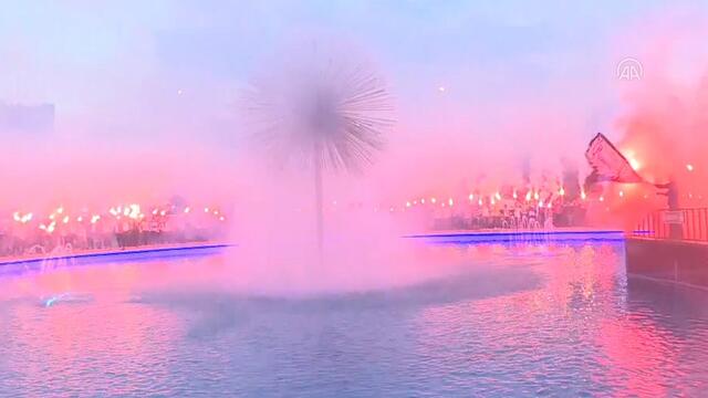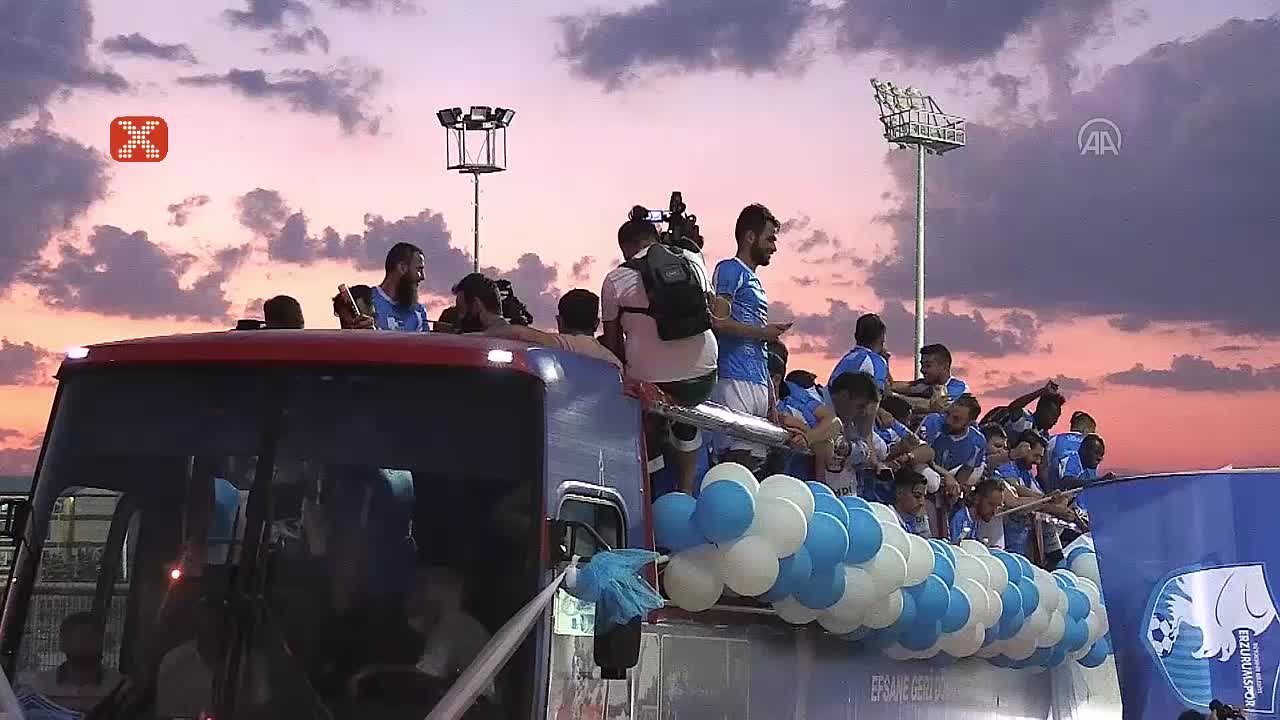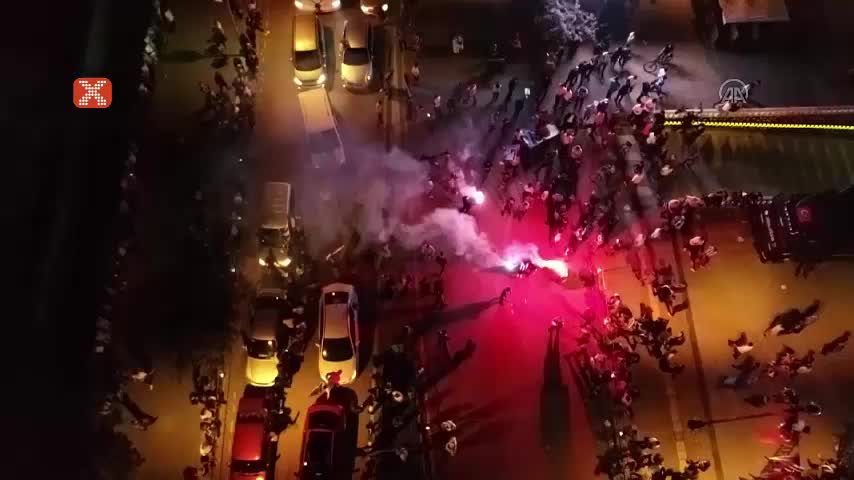 Erzurumspor'un Süper Lig'e yükselmesinin ardından kentteki Havuzbaşı Kent Meydanı ve Cumhuriyet Caddesi'nde toplanan Erzurumspor taraftarları, Süper L...