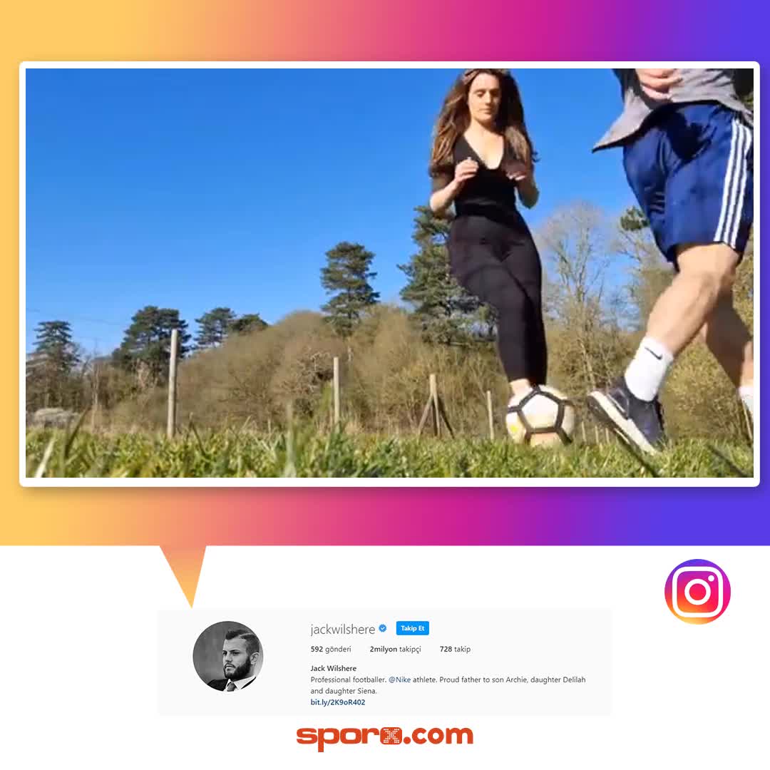 West Ham United'ın oyuncusu Jack Wilshere, Instagram'da eşiyle futbol oynadığı anların videosunu paylaştı. O anlarda Jack Wilshere, eşine sert bir müd...