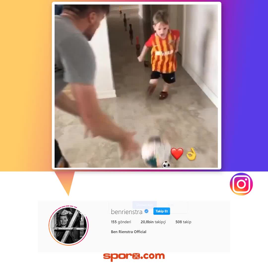 Kayserispor'un Hollandalı oyuncusu Ben Rienstra, karantina günlerinde oğluna evde idman yaptırıyor.
