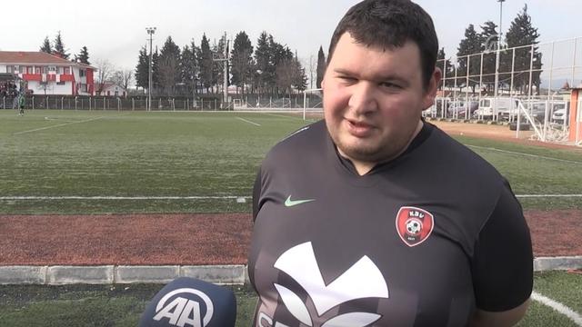 Balıkesir'de, 1. Amatör Küme takımlarından Karesibeyi Vicdaniyespor'da forma giyen 25 yaşındaki Hasan Kılıç, 130 kilo olmasına rağmen futbol tutkusund...