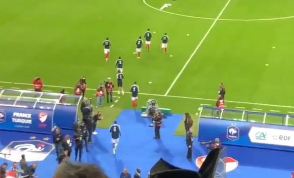 A Milli Takım'ın Fransa ile deplasmanda oynadığı maç öncesi Fransa Milli Takımı'nın kalecileri ve Fransa Milli Takımı, Türk taraftarlarla tarafından ı...