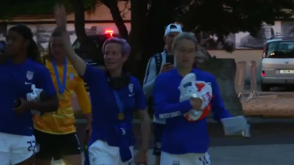 ABD oyuncuları, FIFA Kadınlar Dünya Kupası'nı kazanmanın sevincini otellerine girerken taraftarlarla bir kez daha yaşadı.