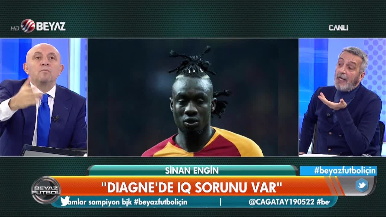 Beyaz Futbol yorumcusu Sinan Engin Diagne için "Diagne, Galatasaray'da 20 gol atar demiştim. Ama birileri bu Diagne'in yeteneklerini çalmış. Kasımpaşa...