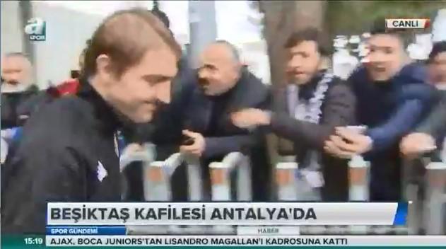 Beşiktaş kafilesi, kamp çalışmaları için Antalya'ya giderken, siyah-beyazlı taraftarlar, Burak Yılmaz transferine tepki gösterdi.