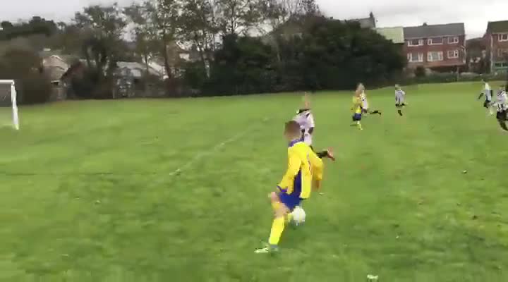Galler'de oynanan 8 yaş altı çocukların mücadele ettiği maçta, topun gol olacağını gören baba, kaledeki oğlunu itti ancak gole engel olamadı. Birleşi...