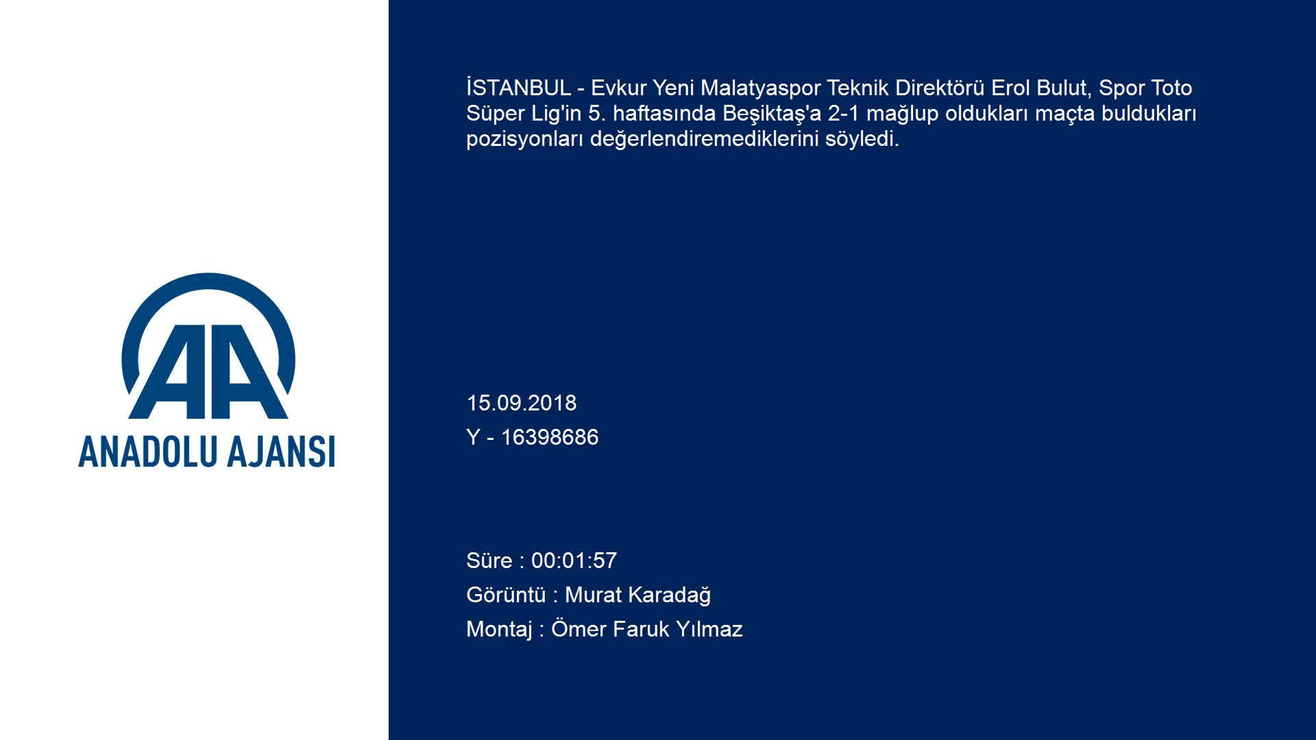 Yeni Malatyaspor Teknik Direktörü Erol Bulut, Spor Toto Süper Lig'in 5. haftasında Beşiktaş'a 2-1 mağlup oldukları maçta buldukları pozisyonları değer...
