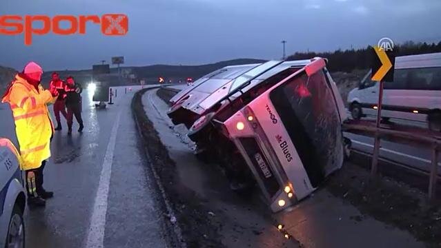 Antalyaspor - Beşiktaş maçı sonrası Kütahya'da, Beşiktaş taraftarını taşıyan otobüsün refüje devrilmesi sonucu 8 kişi yaralandı.