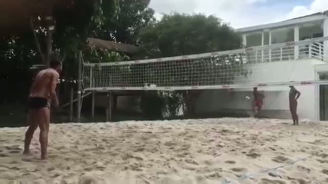 Efsane futbolcu Ronaldinho'nun arkadaşı Natalia Guitler futvoley karşılaşmalarında hünerlerini işte böyle gösterdi.