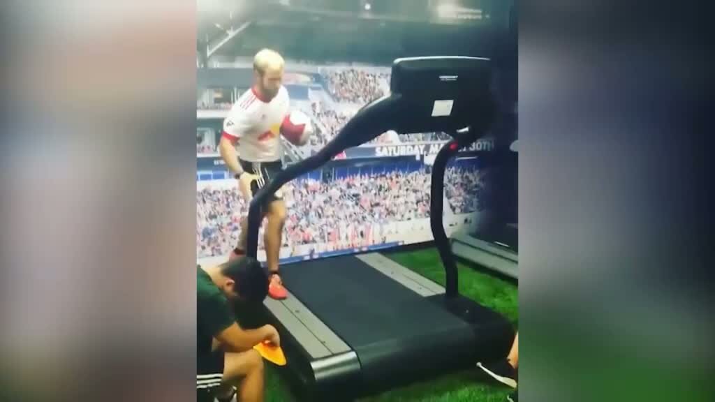 Koşu bandında top koşturmak...Amerikalı genç antrenör koşu bandında top ile artistik hareket yaptı.