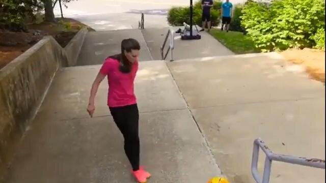 Futbol topuyla inanılmaz işler yapan bir kadın, inanılmaz basketle şok yarattı.