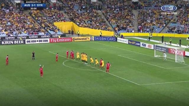 Dünya Kupası Elemeleri rövanşa maçında Avustralya'ya 2-1 yenilen Suriye'nin son dakika bir topu direkten döndü.