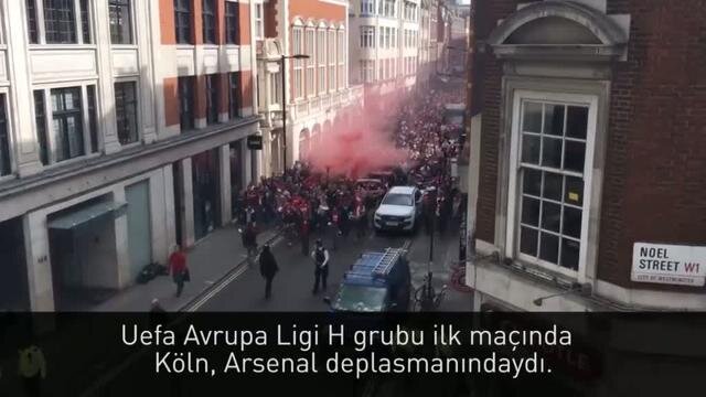 Köln taraftarları, takımlarının Londra'da Arsenal ile oynayacağı UEFA Avrupa Ligi maçına adeta çıkarma yaptı.