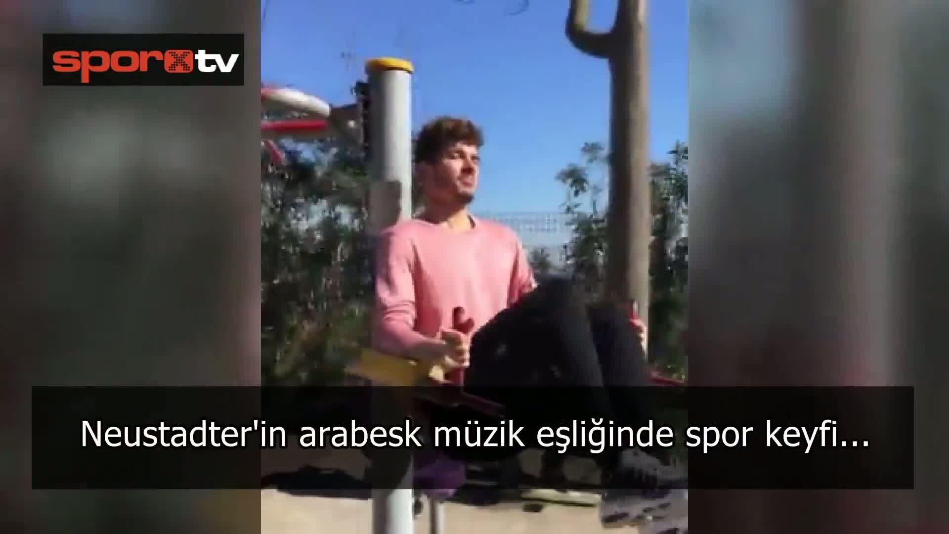 Fenerbahçe'nin Alman asıllı Rus futbolcusu Roman Neustadter izin gününde arabesk müzik eşliğinde spor yaparken, eşi de bu anları görüntüledi...