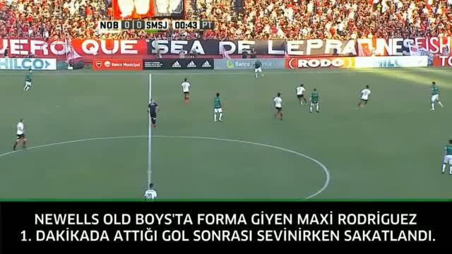 Newells Old Boys'ta forma giyen Maxi Rodriguez 1. dakikada attığı golden sonra sevinirken sakatlandı.