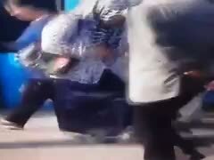 Tramvay durağında beklerken top sektirmeye başlayan teyze izleyenleri şaşırttı.