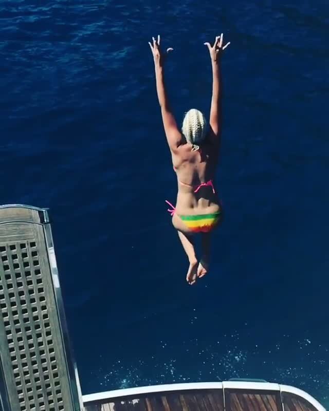 Dusko Tosic'in eşi Jelena Tosic, tatilden denize atlayışını paylaştı.