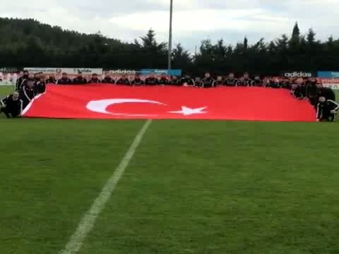 Beşiktaşlı futbolcular, antrenman sahasında açtıkları bayrakla 29 Ekim Cumhuriyet Bayramı'nı kutladı.