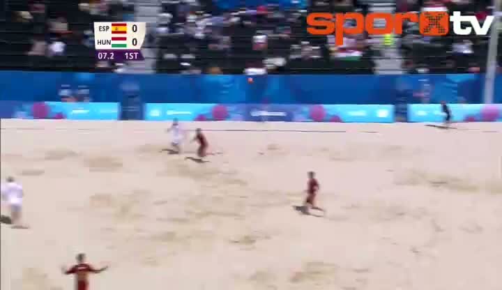 Bakü'de plaj futbolunda Macaristan ile İspanya arasında oynanan maçta Macarlı futbolcu harika bir gole imza attı.