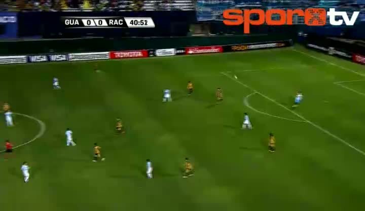 Libertadores Kupası Çeyrek Finali'nde oynanan Club Guarani - Racing Club maçında Guarani forveti Federico Santander'in hava topu mücadelesinde kendini...