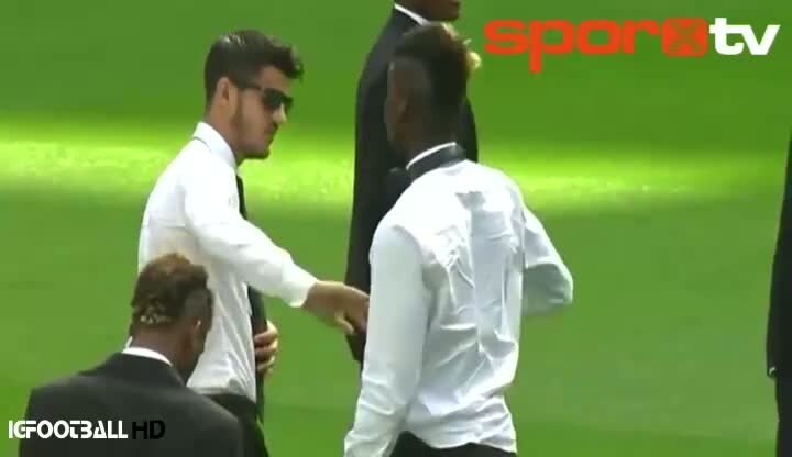 Juventus'un iki genç yıldızı Alvaro Morata ve Paul Pogba, Santiago Bernabeu çimlerinde şakalaşmayı ihmal etmedi...