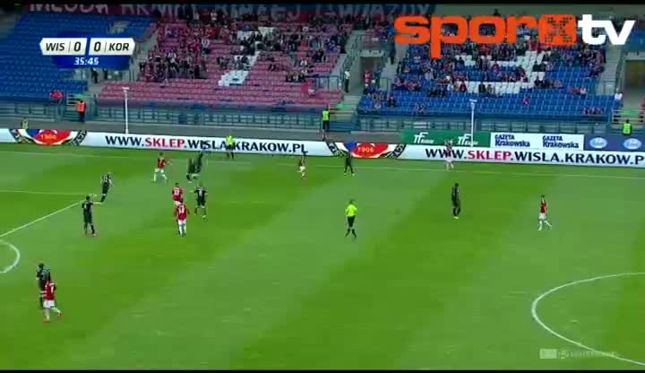 Polonya'da Wisla Krakow ile Korona arasında oynanan maçta Wisla forması giyen Wilde-Donald Guerrier uzak mesafeden attığı harika gol ile tribünlerin a...