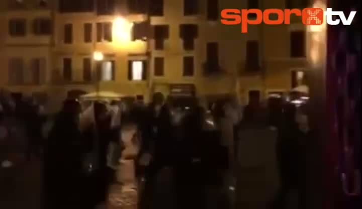 Roma'yla deplasmanda karşılaşacak olan Feyenoord'un taraftarları dün akşam geldikleri şehrin bazı bölgelerini savaş alanına çevirdiler.