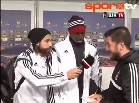 Beşiktaş'ın yıldız futbolcusu Olcay Şahan, Partizan maçının ardından BJK TV mikrofonunu eline aldı ve muhabirlik yaptı.