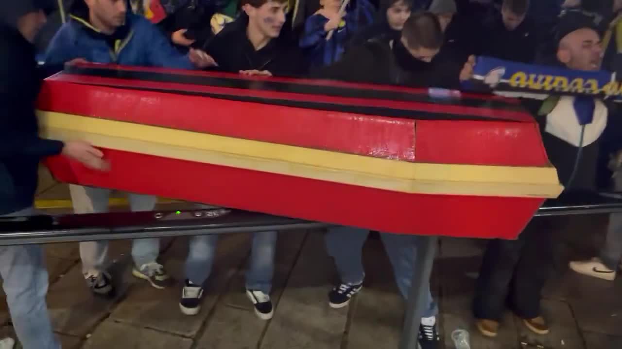 Inter taraftarları, şampiyonluk kutlamaları sırasında Milano Katedrali'nin önüne Milan renklerinde tabut koydu.