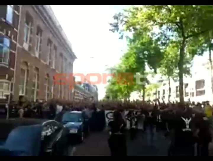 Beşiktaş'ın Şampiyonlar Ligi 3.ön elemesinde oynadığı Feyenoord maçı için Rotterdam'a giden Beşiktaşlı taraftarlar yeri göğü inletti...