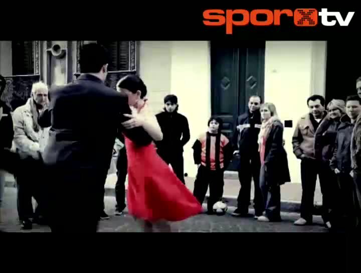 Tango dansı yapan iki kişinin futbol topuyla dansına farklı bir hava kattıkları bir gerçek...