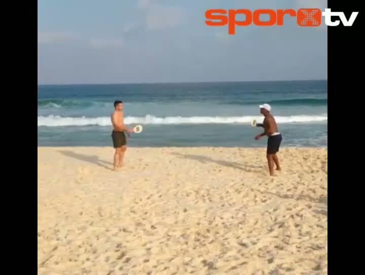 2014 Dünya Kupası için Brezilya'da bulunan Hollandalı yıldız Robin Van Persie, antrenörü Patrick Kluivert'la plajda tenis oynadı...