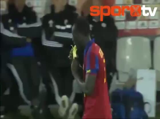 Fransa 3. Ligi'nde Gazelec Ajaccio ile Red Star arasında oynanan mücadelede gol atan Famara Diedhiou, Daniel Alves'in muz yiyerek ırkçılığa verdiği ce...